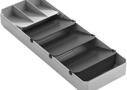 Verstellbarer Schubladen-Besteck-Organizer für bis zu 90 Besteckteilen. Technische Daten: Material: Kunststoff Maße: 15 x 6 x 49 Lässt sich zwischen 40 – 49 cm ausziehen