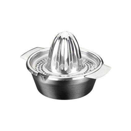 Die Metaltex Zitronen-/Orangepresse gehört in jede Campingküche! Hergestellt aus rostfreiem Stahl, ist sie pflegeleicht und einfach sauber zu halten. mit abnehmbarem Oberteil zwei seitlichen Ausgießern Technische Daten: Material: Stahl Farbe: silber Gewicht: 224 g Maße (T x B x H): 16,5 x 13,5 x 10 cm