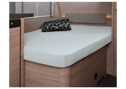 Die dehnbare Moltonunterlage passt sich dank des entsprechenden Zuschnitts, des verarbeiteten Materials aus Baumwolle und Elastan und des integrierten Gummiumzuges ideal der Ma-tratze an und sorgt einerseits dafür, dass diese geschont wird, andererseits erhält man so eine vollkommen glatte Unterlage für das Spannbetttuch. Sie ist waschbar bis 95 °C, geeignet für eine Matratzenhöhe von ca. 10 – 16 cm. passend für französisches Bett im Wohnwagen waschbar bis 95 °C Technische Daten: Material Textil: 20 %…