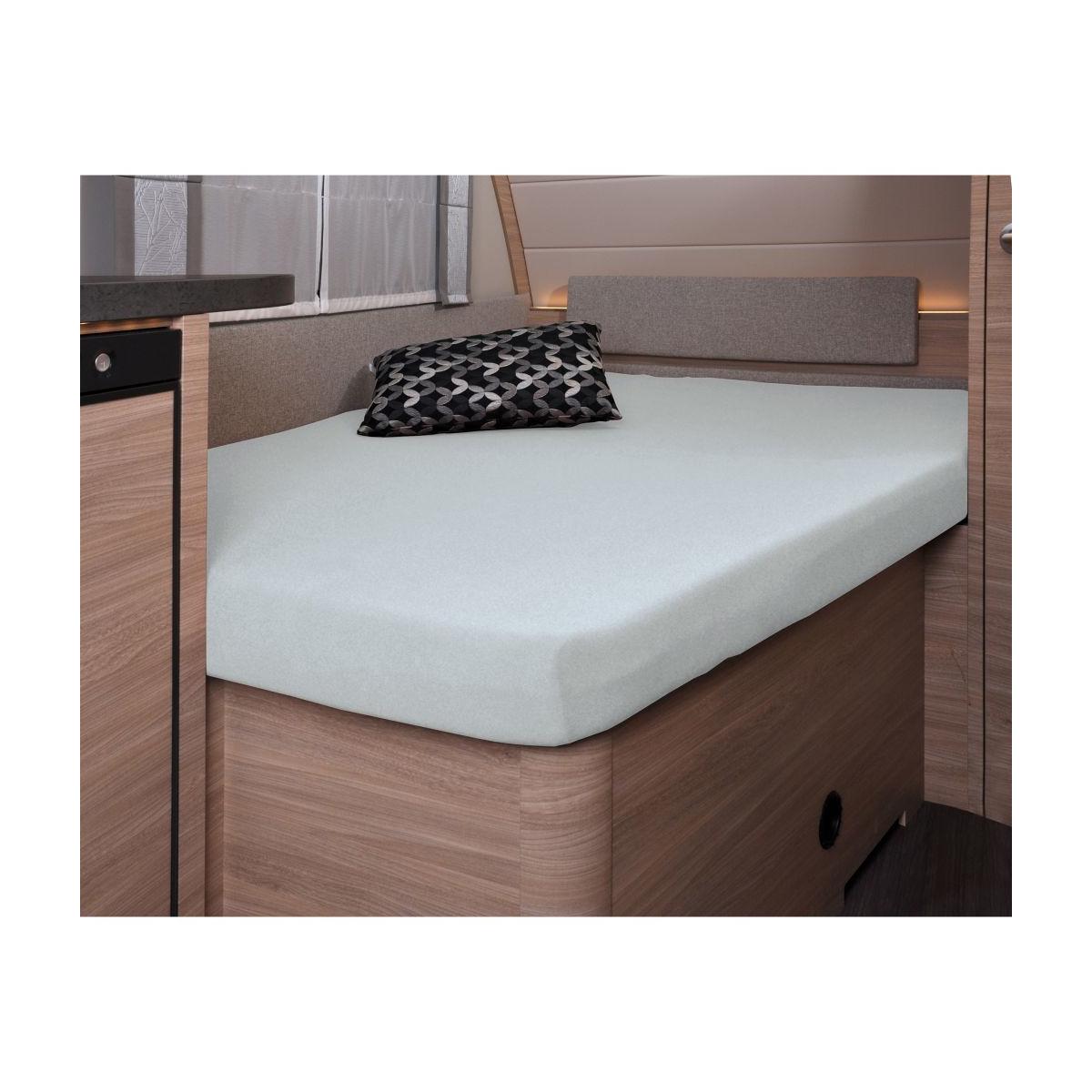 Die dehnbare Moltonunterlage passt sich dank des entsprechenden Zuschnitts, des verarbeiteten Materials aus Baumwolle und Elastan und des integrierten Gummiumzuges ideal der Ma-tratze an und sorgt einerseits dafür, dass diese geschont wird, andererseits erhält man so eine vollkommen glatte Unterlage für das Spannbetttuch. Sie ist waschbar bis 95 °C, geeignet für eine Matratzenhöhe von ca. 10 – 16 cm. passend für französisches Bett im Wohnwagen waschbar bis 95 °C Technische Daten: Material Textil: 20 %…