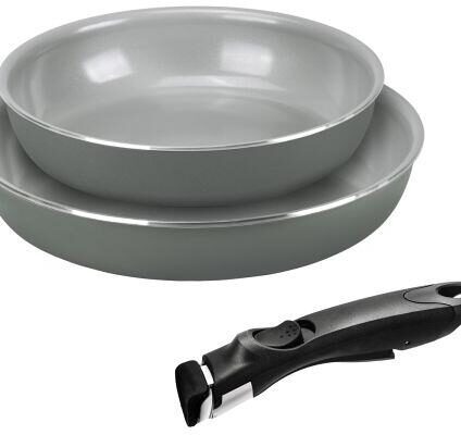 Die in Italien gefertigte Moneta Melodia Minispace-Serie vereint Nachhaltigkeit mit platzsparendem Design, ideal für Outdoor-Enthusiasten. Aus 100 % recyceltem Material hergestellt, zeichnen sich die Töpfe und Pfannen durch ihre umweltfreundliche, keramische FINEGRES-Versiegelung aus. Der innovative, für alle Teile passende abnehmbare Griff spart wertvollen Platz beim Packen und sorgt für Vielseitigkeit beim Kochen. Mit einem oxidationsgeschützten Boden für dauerhafte Nutzung ist dieses…