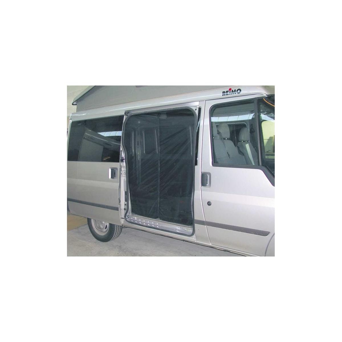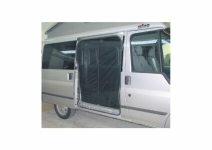 Moskitonetz für Ford Transi und Ford Transit Custom. Engmaschiges Moskitonetz auch gegen kleinste Insekten, UV-stabiles und flexibles Polyestergewebe, flammhemmend, langlebig, hohe Qualität, gute Durchsicht und Luftzirkulation, mit Reißverschlüssen von innen und außen zu bedienen bei Schiebetür, Befestigung mit Klettband seitlich und oben, zusätzlicher halt durch Druckknöpfe, Bleiband als Abschluss unten.