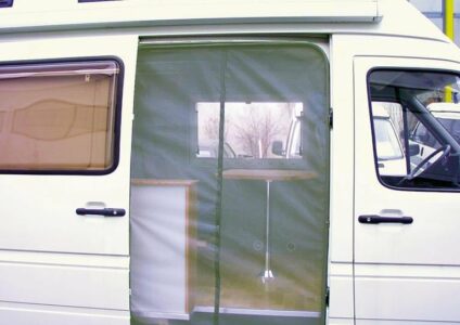 Engmaschiges Moskitonetz auch gegen kleinste Insekten UV-stabiles und flexibles Polyestergewebe flammhemmend langlebig hohe Qualität gute Durchsicht und Luftzirkulation mit Reißverschlüssen von innen und außen zu bedienen bei Schiebetür Befestigung mit Klettband seitlich und oben zusätzlicher Halt durch Druckknöpfe Bleiband als Abschluss unten Passend für Mercedes Sprinter und VW CrafterabBaujahr 2007 Achtung: Nicht für Serienhochdach geeignet