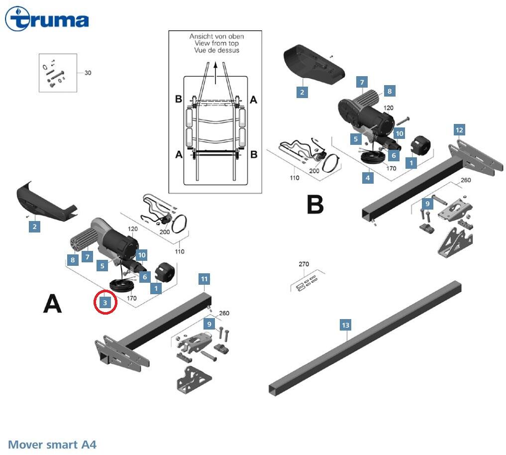 Motor/Getriebe A 6,5 m – Truma Ersatzteil Nr. 60040-00403 – für Mover smart A4