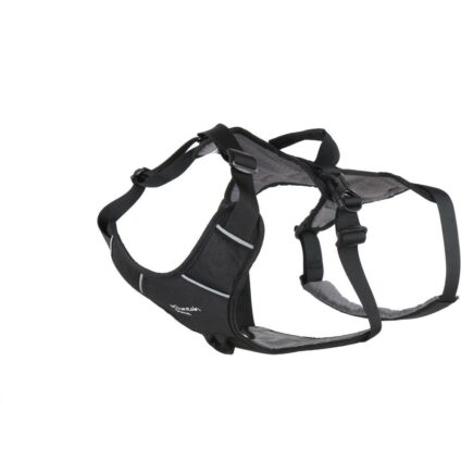 Voll verstellbares Geschirr mit Hals- Brust und Bauchverstellung. Ideal um den Hund auch in schwierigen Verhältnissen gut kontrollieren und sichern zu können. Atmunsgaktive und flexibeler Schaumstoffpolsterung, reflektierende Elemente, gepolsterter Handgriff zum Anheben und Halten des Hundes sowie ein Alu-D-Ring für die sichere Befestigung der Leine. komplett verstellbar und gute Hundekontrolle atmungsaktive Polsterung reflektierende Elemente Befestigungspunkt Technische Daten: Material: Polyester,…