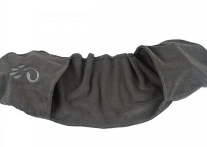 Das Handtuch für den Hund. Mit großen Eingrifftaschen auf beiden Seiten. Man schlüpft mit beiden Händen in die Taschen links und rechts und kann so den Hund perfekt abfrottieren, massieren, gut halten und wird selbst nicht ganz so schmutzig. Technische Daten: Material: 100 % Polyester Microfibre Größe: 120 x 80 cm waschbar