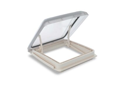 Ansprechende Rauchglas-Dachhaube mit Doppelverglasung und ansprechendem Innenrahmen. stufenlos aufstellbar bis 50° sehr flache Haube stark reduzierte Fahr- und Zugluftgeräusche doppelwandiger Rahmen für bessere Isolation hoher UV-Schutz durch getöntes Haubenmaterial Dauerbelüftung bis zu 150 cm2 Technische Daten: Dachstärke bis: 60 mm Dachstärke von: 25 mm Ausschnitt Nennmaß: 400 × 400 mm Höhe über Dach: 80 mm Haubengröße: 490 x 470 mm Größe: M Farbe: weiß ohne Zwangsbelüftung Maße (B x T x H): 565 ×…