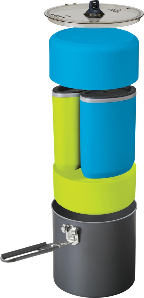 Kompaktes und leichtes Kochgeschirr für SolotourenDiese Komplettlösungen sind extrem leicht zu verstauen und einfach zu verwenden. Sie lassen sich problemlos stapeln und kombinieren. So eignen sie sich für eine Vielzahl an kulinarischen Bedürfnissen. Soloabenteurer werden genauso begeistert sein wie Gruppenreisende.mit isoliertem GriffultraleichtTechnische Daten:Modell: Trail Mini™ Solo Kochset Material: Hartanodisierter AluminiumVolumen Topf: 1,2l mit SiebdeckelVolumen Schüssel: 830 mlGewicht: 289 g…