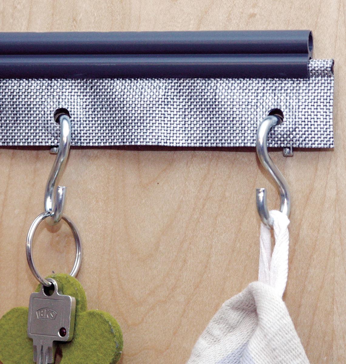 In die Kunststoffösen dieses grauen Textilkeders lassen sich z.B. S-Haken einhängen, um eine praktische und vielseitige Hängemöglichkeit für allerlei Kleinteile zu haben. Mit seinen üblichen 7,0 mm Durchmesser passt er praktisch in jede Kederschiene.Länge 200 cm.