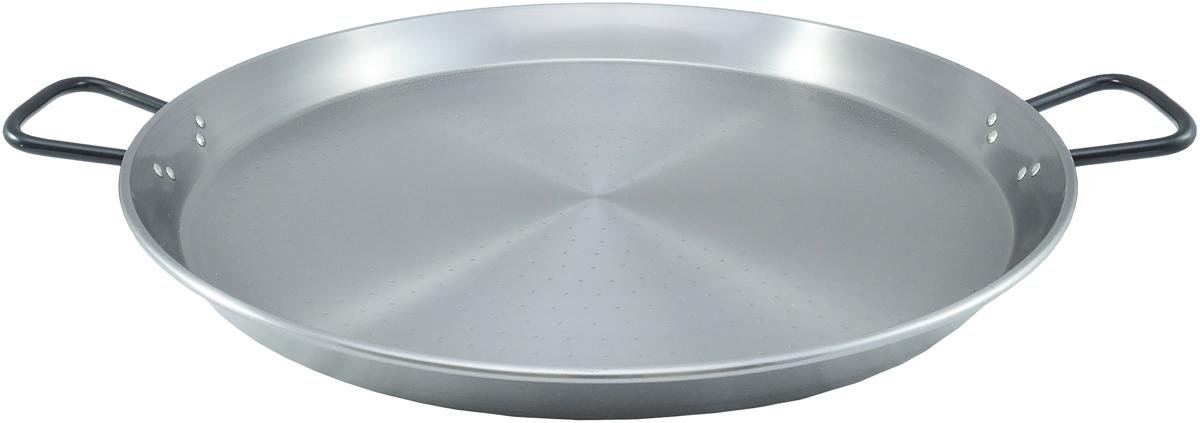 Paellapfanne aus kaltgewalztem Stahl. Mit flachem Boden und Rand, um Lebensmittel an Ort und Stelle zu halten. Ideal für Gasbrenner oder offenes Feuer. Stilvolle Pfanne, die auch zum Servieren verwendet werden kann. Oberer Durchmesser 70 cm, unterer 64 cm. nicht spülmaschinenfest für Gasbrenner oder offenes Feuer Technische Daten: Material: Stahl Druchmesser: Ø 70 cm