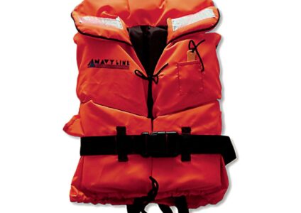 Navyline Rettungsweste mit Tragekomfort durch geteilten, mehrlagigen Schaum. hohe Qualität, Fertigung in der EU 100 N Feststoff Rettungswesten mit Kragen Reißverschluss vorne einstellbarer Bauch- und Schrittgurt leuchtender, orangefarbiger Stoff, Reflexstreifen, Pfeife Technische Daten: Material: 100 % Nylon Auftriebsklasse: 100 N Größe: 30-50 kg Farbe: orange Lieferumfang: Rettungsweste