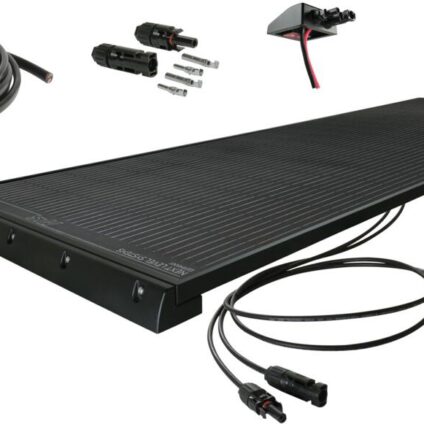Komplettset ausgestattet mit allen erforderlichen Bauteilen, die benötigt werden, um eine NL DUAL AIR Solaranlage in ein Reisefahrzeug einzubauen.Um den Einbau schnell und einfach durchzuführen, sind an den DUAL AIR Solarmodulen die Spoilerprofile und die steckbaren Anschlusskabel bereits vormontiert.Innenraumkabel (6 m) liegen ebenso bei, wie das aufklebbare MC4 Dachdurchführung-Set. Aufsteckbare Halteclips sowie Wago-Klemmen und ein EBL-Steckverbinder werden mitgeliefert, um den Solarstrom in…