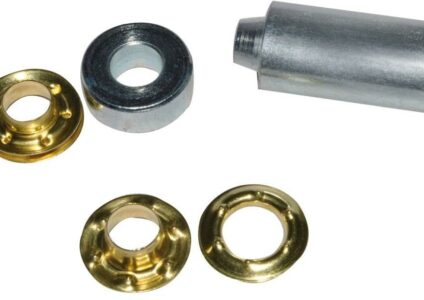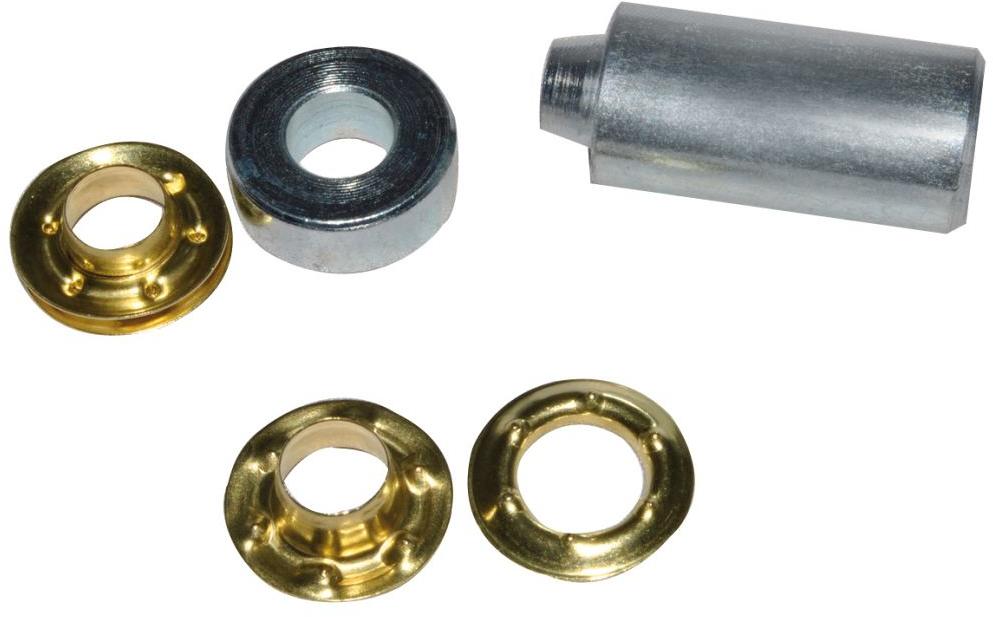 Zum nachträglichen Anbringen von Befestigungsösen an Vorzeltschürzen, Zelten etc., komplett mit Werkzeug. 15er Pack.