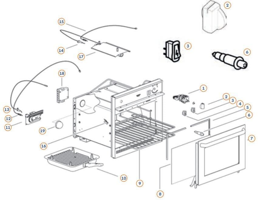 Ofen Ersatztür, gebogener Griff, für Duplex Backofen MK 3-4/SOG7. Thetford Art.Nr. SMAO3435.BKX Abbildung 7