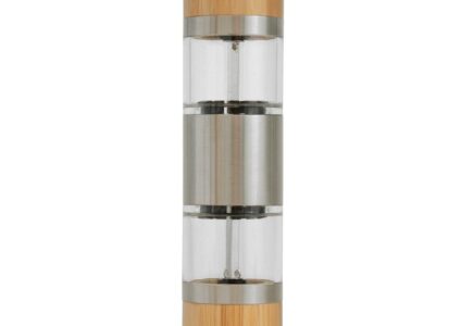 Formschöne und hochwertige 2in1 Salz- und Pfeffermühle. Der Gewürzstreuer zeichnet sich durch ein sehr hochwertiges Keramikmahlwerk aus. Die Schutzkappen dienen zum Schutz vor Schmutz und für den besseren Erhalt der Aromastoffe von Pfeffer und Salz. Besticht durch geschmackvolles Design, indem Bambus und Edelstahl harmonisch miteinander vereint werden. Ideal für unterwegs oder zum Campen geeignet. Merkmale: 2in1 Salz- und Pfeffermühle Keramikmahlwerk Aromaschutz- und Schmutzkappen Geschmackvolles Design…