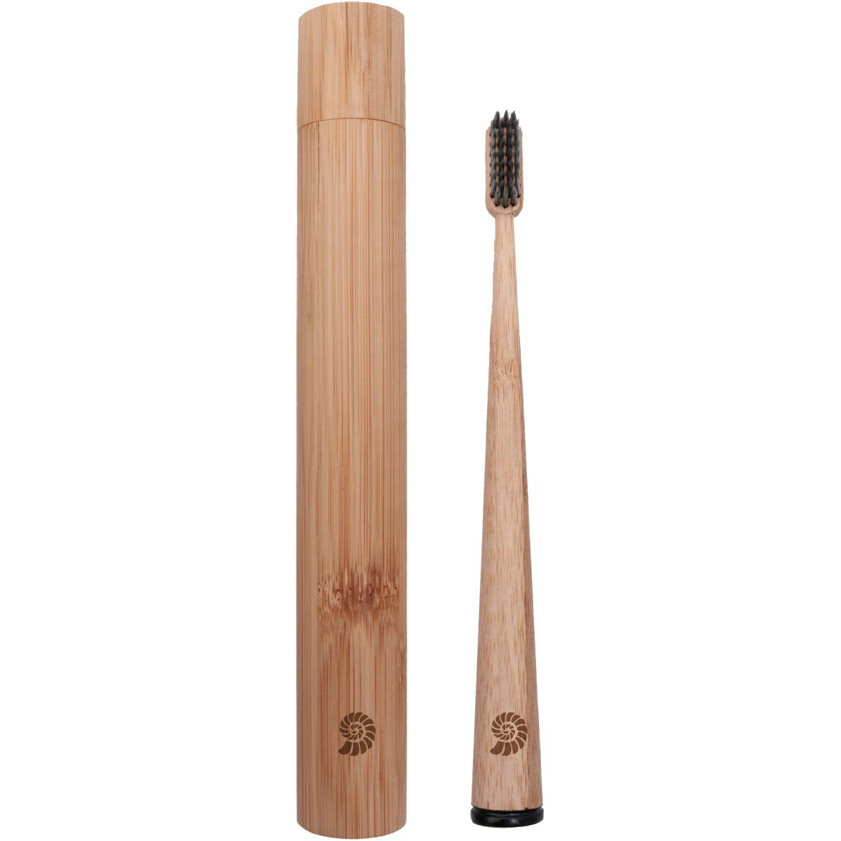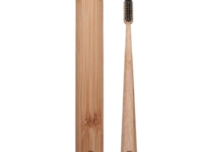Praktische und nachhaltige Bambuszahnbürste im schönen Bambusetui. Durch die Kegelform der Zahnbürste kann diese zum Trocknen hingestellt werden und muss aus Hygienegründen nicht liegen. Der Griff liegt gut in der Hand und ist gefertigt aus natürlichem Bambus. Bambus ist von Natur aus antibakteriell und Keimen gegenüber sehr widerstandsfähig. Die Borsten aus Bambus-Viskose sind vegan, angenehm weich und robust. Die Zahnbürste ist sehr gut verarbeitet und stabil. Eignet sich perfekt für den täglichen…