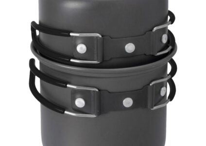 Die Trekking Topfsets aus hartanodisiertem Aluminium sind die idealen, leichtgewichtigen Begleiter für jede Trekking Tour. Diese kleinere Version ist für 1 – 2 Personen entwickelt worden. Die stabilen Klappgriffe bieten sicheren Halt bei jedem Füllstand. Der Transport erfolgt im praktischen Netzbeutel. sehr leicht stabile und gummierte Klappgriffe großes Volumen inklusive Netzbeutel Technische Daten: Gewicht: 216 g Packmaß: Ø 13 x 16 cm Maße Topf (800 ml, 126 g): Ø 13 x 10 cm Maße Deckel (500 ml, 90 g):…