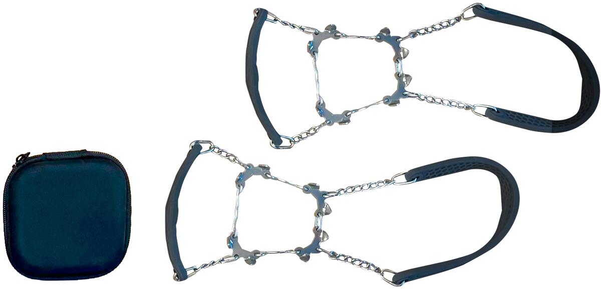 Die sehr leichten und kompakten Schuhketten bieten sicheren Halt bei Glatteis und auf verschneiten Wegen im flachen Gelände. Ausgestattet mit wirksamen Krallen und in hervorragenden Verarbeitung. Die zusätzlich eingebauten Verstärkungsringe bieten höchste Stabilität und Haltbarkeit. Dank Elastomer-Gummi können diese in Sekundenschnelle perfekt unter nahezu an jedem Schuh an- und ausgezogen werden. Mit praktischen und robusten Transportetui. Findet problemlos Platz in jeder Tasche oder Rucksack.für den…