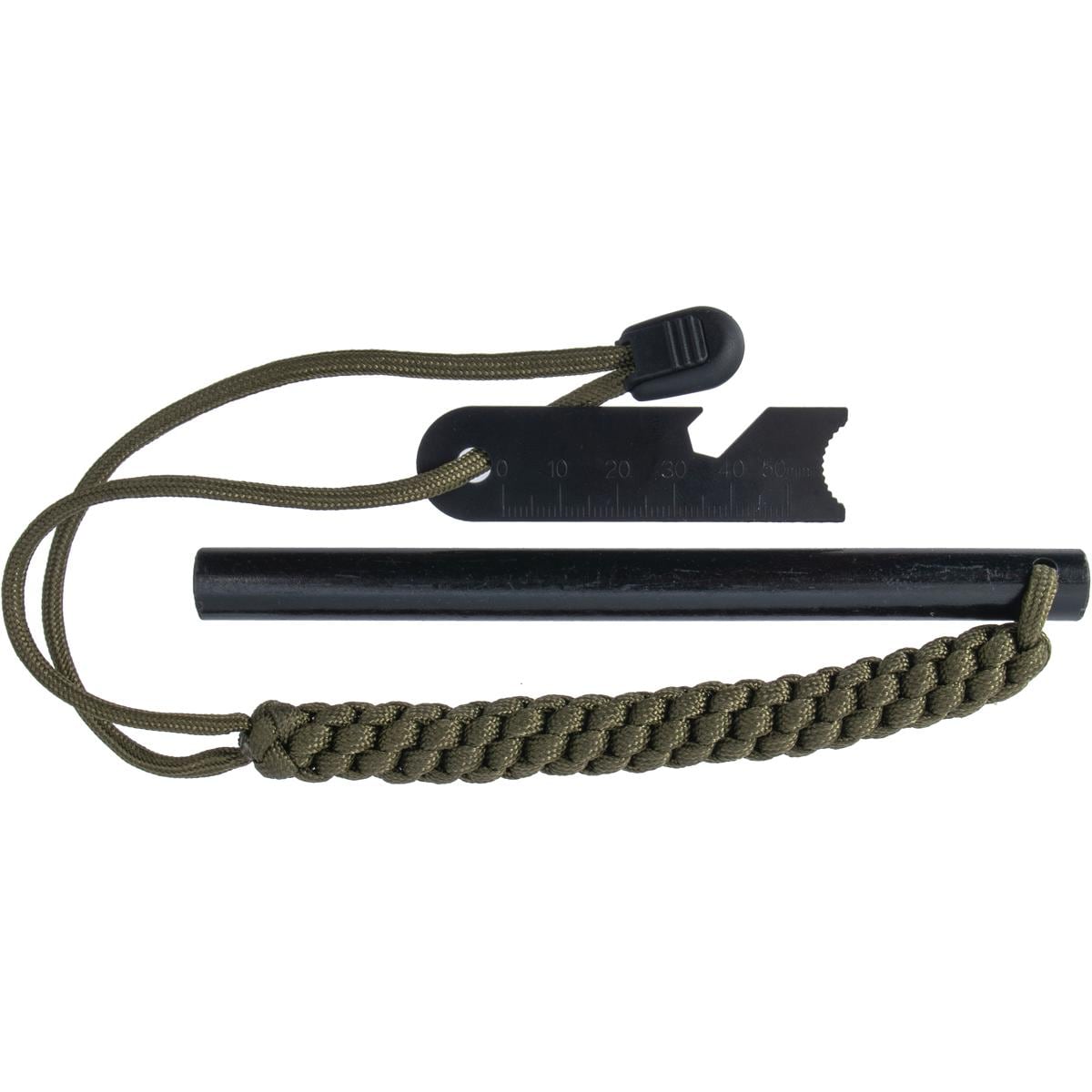 Mit bis zu 22.000 Zündungen gehört der Zündstahl ',Goliath', zu den langlebigsten seiner Art. Die Größe macht die Handhabung vor allem mit dem Messerrücken sehr einfach und effektiv. Ausgestattet mit ca. 3 m Paracord ist der Zündstahl unerlässlich für jede professionelle Survivalausrüstung. ca. 22.000 Zündungen gänzlich unempfindlich gegen Feuchtigkeit mit ca. 3 m Paracord Technische Daten: Gewicht: 149 g Maße Zündstahl: 15 cm x Ø 1,2 cm Material Feuerstahl: Magnesiumlegierung Farbe: schwarz…