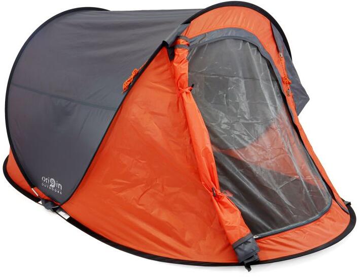 Origin Outdoors Quicksembly Pop Up Zelt, 2 Personen, Moskitonetztür, Fenster, grau/orange