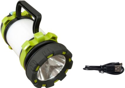 Sehr helle und vielseitig verwendbare Lampe mit 1000 Lumen und Powerbankfunktion. Ein echter Allrounder für unterwegs: Campinglaterne, Taschenlampe und Powerbank in einem. Ausgestattet mit einem Kunststoffglas, welches ein indirektes Licht gleichmäßig 360° ausstrahlt. Als Taschenlampe wie auch als Campinglaterne verfügt Sie zwei Helligkeitsstufen. Als Campinglaterne verfügt sie zudem über Rotlicht und rotes Blinklicht. Der angebrachte Aufhängehaken lässt sich ebenso einklappen wie der seitlich…