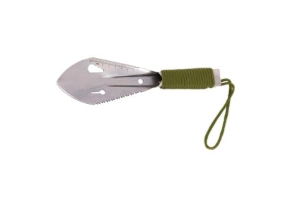 Die kleine und handliche Schaufel ist ein äußerst praktischer Begleiter bei kleineren Trekkingtouren durch die Natur. Mit über 7 Funktionen kann die Schaufel sehr vielseitig eingesetzt werden. Die Funktionen sind: Schaufel, Nagelzieher, Messer, Säge, Schraubenschlüssel und Lineal. Gefertigt aus hochwertigem Messer Edelstahl ist die Schaufel sehr beständig gegen Rost. Der Griff ist mit einem 3 Meter langen und für Notsituationen sehr nützlichen Paracord umwickelt. Mit praktischer Handschlaufe und im…
