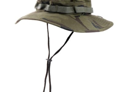 Ein praktischer und leichter Hut in grüner Tarnfarbe, der zuverlässig vor Sonnenstrahlung schützt. Aus Baumwolle gefertigt ist er sehr kompakt zusammenfaltbar und kann äußerst platzsparend im Gepäck verstaut werden. Er verfügt über einen verstellbaren Kinnriemen, mit dem sich auch die Krempe nach oben Umschlagen lässt. Dank des eingenähten Gummibandes mit Kordelstopper kann der Hut zusätzlich festgezogen werden. Die Hutkrone ist mit 4 vergitterten Belüftungslöcher ausgestattet. In der Krone befindet…