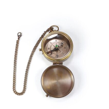 Taschenkompass aus massiven Messing in antikem Finish und mit einer Kompassrose geprägtem Lederetui. Ausgestattet mit einer Kompasskupferrose, seitlicher Transportsicherung für die Kompassnadel, Taschenkette und einer Gürtelschlaufe am Lederetui. Die Oberseite des Kompasses kann auch ideal zum Gravieren für ein persönliches Geschenk verwendet werden. Ein perfekter Begleiter für Pfadfinder, Camping oder Wanderer. antikes Finish mit Taschenkette und Transportsicherung Lederetui mit Gürtelschlaufe…