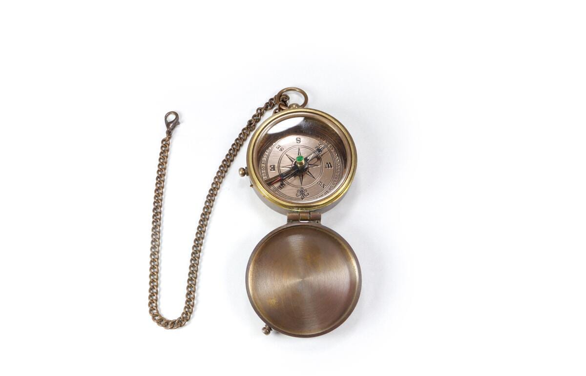 Taschenkompass aus massiven Messing in antikem Finish und mit einer Kompassrose geprägtem Lederetui. Ausgestattet mit einer Kompasskupferrose, seitlicher Transportsicherung für die Kompassnadel, Taschenkette und einer Gürtelschlaufe am Lederetui. Die Oberseite des Kompasses kann auch ideal zum Gravieren für ein persönliches Geschenk verwendet werden. Ein perfekter Begleiter für Pfadfinder, Camping oder Wanderer. antikes Finish mit Taschenkette und Transportsicherung Lederetui mit Gürtelschlaufe…