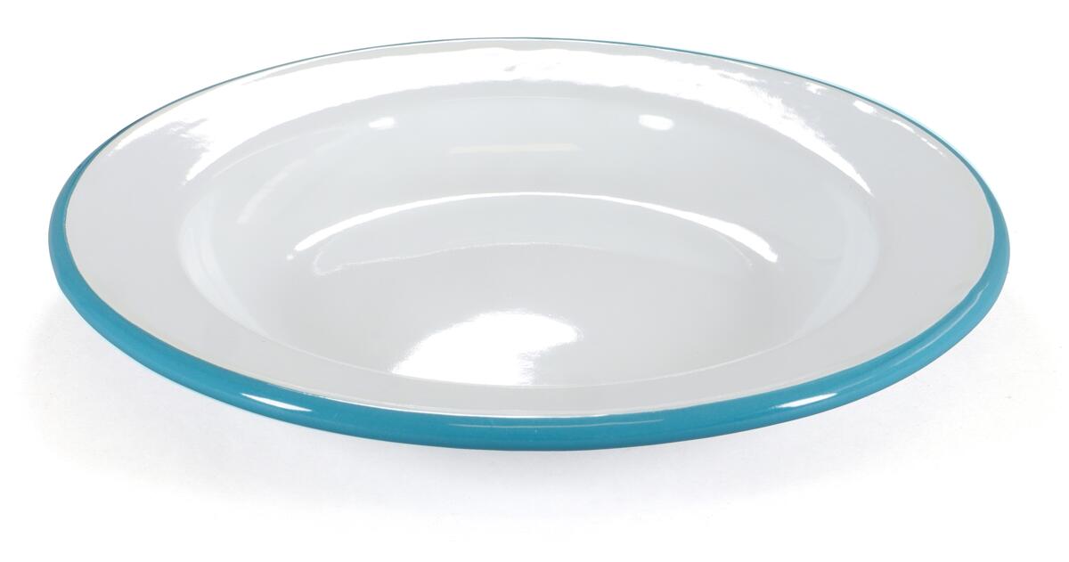 Klassischer Emaille Teller mit robusten Rand. Das Material des Tellers ist absolut hitzeunempfindlich, langlebig und geschmacksneutral. Einfach zu reinigen und bakterienhemmend durch die glatte Oberfläche. Der sehr leichte Teller ist bestens für Camping, Wandern oder Grillen geeignet.langlebig und geschmacksneutralbakterienhemmend durch die glatte OberflächeTechnische Daten:Gewicht: 210 gMaße: Ø 20 x 2,3 cmMaterial: EmailleFarbe: ocean