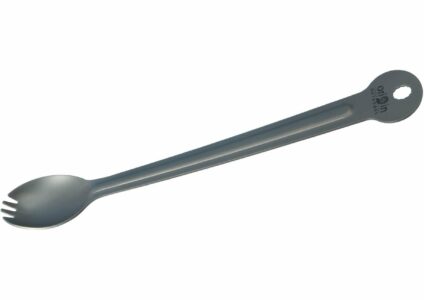 Extra langes und leichtes Universalbesteck mit Gabel, Löffel und praktischer Befestigungsöse. Der Spork aus rostfreiem Titan, besticht durch seine abgerundeten Kanten und ergonomische Form. Bestens geeignet für hohe Thermobehälter oder Reisenahrung aus der Tüte. Dank der Multifunktionalität sparen Sie zusätzliches Gewicht. Der Spork ist der perfekte Begleiter zum Reisen, Wandern und Trekking. Leicht zu reinigen und spülmaschinenfest. extra lang und leicht mit Befestigungsöse abgerundete Kanten geeignet…