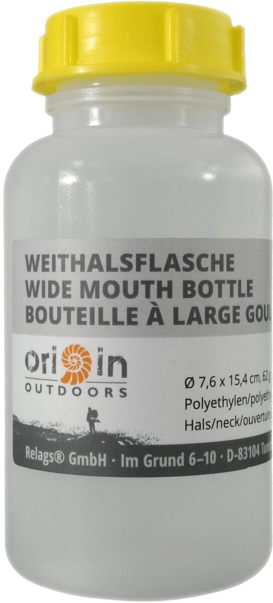 Unsere Weithalsflaschen aus Polyethylen sind sowohl im Outdoorbereich als auch im medizinischen Sektor tausendfach bewährt. Weithalsflaschen sind außerdem preiswert und somit die erste Wahl für alles, was sicher und staubdicht aufbewahrt werden muss.Technische Daten:Kapazität: 500 mlDurchmesser: Ø 39 mmGewicht: 62 gMaße: Ø 7,6 x Höhe 15,4 cmMaterial: PolyethylenLieferumfang:1 Origin Outdoors Weithalsflasche