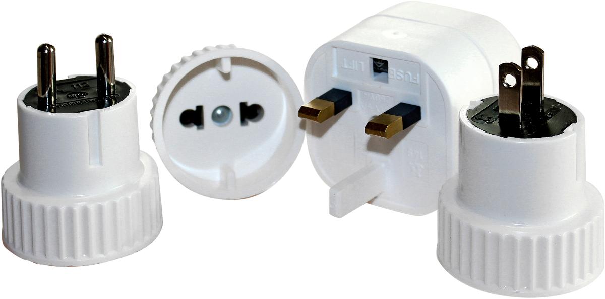 Steckeradapter für die Reisen um die Welt. Mit Kontaktmöglichkeiten für nahezu alle Steckdosen dieser Erde. Ob Afrika, China, HongKong, Israel, SriLanka, Türkei, Kenia, Mallorca, Südeuropa, USA, GUS, Arabien, Südamerika, die Länder des Commonwealth (nicht Australien und Neuseeland) und viele mehr. Technische Daten: Packmaß 14 x 4,7 x 4,7 cm Gewicht: 137 g bis 10 A, engl. Adapter mit Sicherung bis 5 A Lieferumfang: Adapter-Set mit 4 Adaptern