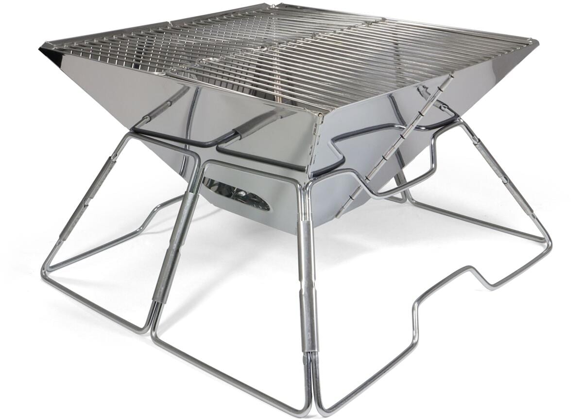 Der viereckige Grill aus Edelstahl bietet eine große Grillfläche. Dank seiner zusammenfaltbaren Bauweise ermöglicht er einen schnellen Auf- und Abbau und ist auch als Feuerschale nutzbar. Ausgestattet mit einer einlegbaren Bodenplatte, einen Kohlerost und einen mittig zusammenklappbaren Grillrost. Die faltbaren Wandsegmente schützen die Glut vor starkem Wind. Die Sauerstoffzufuhr wird durch die in den Wandsegmenten eingearbeiteten Luftlöcher unterhalb des Kohlerosts gesichert.Kleines PackmaßGroße…