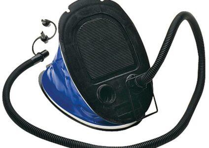 Klassische Fußpumpe für Luftmatratzen, kleine bis mittlere Luftspielzeuge und Schlauchboote. Sowohl zum Aufpumpen als auch zum Abblasen verwendbar Technische Daten Größe: 21 x 7.5 x 29.8 cm (BxTxH) Volumen: 5 L Farbe: blau Gewicht: 0.6 kg Lieferumfang: Blasebalg, drei verschiedene Düsen