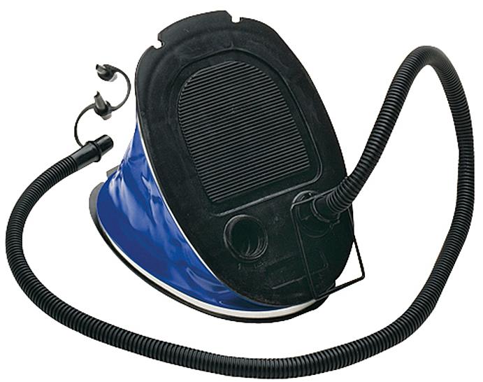 Klassische Fußpumpe für Luftmatratzen, kleine bis mittlere Luftspielzeuge und Schlauchboote. Sowohl zum Aufpumpen als auch zum Abblasen verwendbar Technische Daten Größe: 21 x 7.5 x 29.8 cm (BxTxH) Volumen: 5 L Farbe: blau Gewicht: 0.6 kg Lieferumfang: Blasebalg, drei verschiedene Düsen