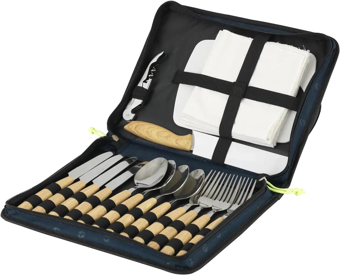 Das Morella Picknick-Besteckset bietet alle notwendigen Besteckgegenstände, die Sie für Picknicks oder Campingausflüge benötigen. Ordentlich in einer praktischen Tragetasche verpackt, ist er leicht, leicht zu transportieren und ideal für Familien oder zwangloses Essen im Freien. Hergestellt aus langlebigen Materialien für zuverlässige und bequeme Nutzung überall.Küchenausstattung für Picknicks und CampingGriff für einfaches TragenTechnische DatenZusammensetzung von Textilfasern: Tragetasche: 100 %…
