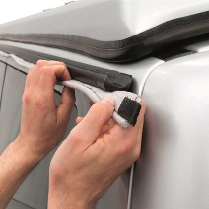 Mit dem Touring-Set lässt sich das Busvorzelt sicher am Fahrzeug befestigenVerbindet Ihr Busvorzelt per Keder mit Bus & Wohnmobil7 mm, eignet sich für StandardstangenTechnische DatenDach-Befestigungslänge: 270 cmKeder-Durchmesser: 7-7 mmGröße: 7-7 mmFarbe: grauGewicht: 1,1 kgLieferumfang: 1 x Textil-Keder (270 cm), 3 x Doppelkeder-Verbindungsprofil (90 cm)