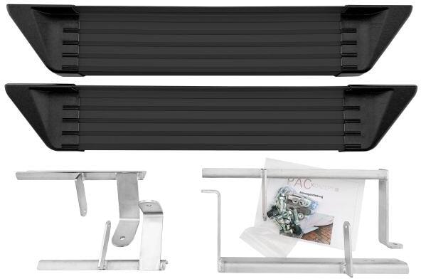 Zusatz-Einstiegststufe für Fahrer- und Beifahrerseite, passend für Teilintegrierte- und Alkovenfahrzeuge, Campervans und Kastenfahrzeuge auf Basis Fiat Ducato, Citroen Jumper, Peugeot Boxer ab Bj. 2006 →.Trittstufen aus eloxiertem Aluprofilen (einstell- und anpassbar an Ihr Reisemobil) mit rutschsicherer Profilierung und stabilen Kunststoff-Endkappen. Der Freistufensatz wird durch fahrzeugspezifische und mitgelieferte Edelstahlkonsolen am und unter dem Fahrzeugholm fest verschraubt. Neu mit ABE (keine…