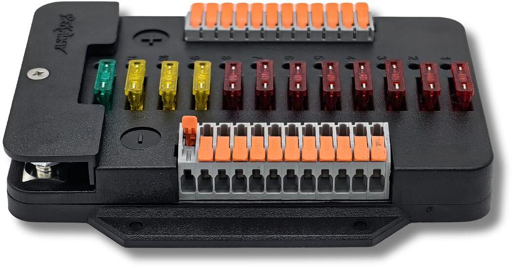 Vorbei sind die Zeiten vom umständlichen Crimpen für altmodische Sicherungsblöcke. Denn unser Sicherungsblock nutzt anstelle von Verschraubungen moderne Wago Hebelklemmen. Die Verbindung ist dadurch nicht nur sicherer, sondern auch wesentlich einfacher zu installieren, da das Crimpen der Kabel wegfällt. Jeder, der schon mal in einer kleinen Ecke unter dem Bett oder in einem Schrank, Kabel vercrimpt hat, wird dieses Tool sehr zu schätzen wissen.Der FUSY ca. genauso groß wie handelsübliche 12…
