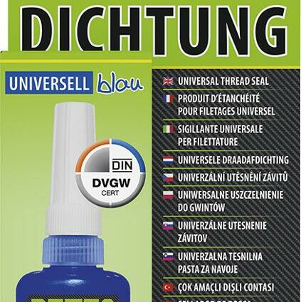 Hochviskose, mittelfeste und temperaturbeständige universal Gewindedichtung für Gewinde mit einem großen Spaltmaß von bis zu 0,6 mm/4“. Temperaturbeständig bis +180°C und druckbeständig bis 60 bar. Zum Dichten und Sichern von Metall-Schraubgewinden gegen Gas, Luft, Wasser, Kraftstoffe, Öl und viele Chemikalien. Installations- und Sanitärbereich, Rohrleitungsbau, Industrie, Automobil, Wasserwirtschaft, Gas-, Chemie- und Ölindustrie. schnelle anaerobe Aushärtung vibrationsfest kann Hanf, P.T.F.E.-Bänder…
