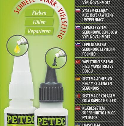 Zur superschnellen Verklebung von unterschiedlichen Materialien wie z. B. Kunststoffe und Kunststoffmischungen, Metall, Gummi, Keramik, Porzellan, Holz u.v.m. In Verbindung mit PETEC SpeedBond Filler können Risse, Fugen, Löcher und Spalten überbrückt bzw. verklebt werden. Stabi lisierung von Klebestellen durch den Einsatz von SpeedBond Filler. Schnelle Aushärtung durch den zusätzlichen Einsatz von SpeedBond Aktivator Spray schnell, stark, vielseitig kleben, füllen, reparieren in Verbindung mit SpeedBond…