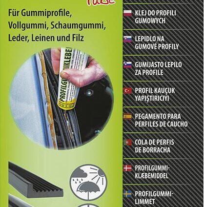 Für klein- und großflächige Verklebungen im Innen- und Außenbereich von z. B. Gummiprofilen, Voll-, Schaum- und Naturgummi sowie Leder, Leinen, Filz, Hart-PVC und Butylkautschuk, auch in Verbindung mit Holz, Faserzementplatten und Metallen (Stahl, Blech, Aluminium) u.v.m. Im Automobilbereich (Türgummis, Dichtungen, Verkleidungen, Dämmmatten und -folien u.v.m.), Caravan, Boot, Industrie, Handwerk und Haushalt. für saugende und nichtsaugende Materialien geeignet starke Haftung beständig gegen Wasser,…