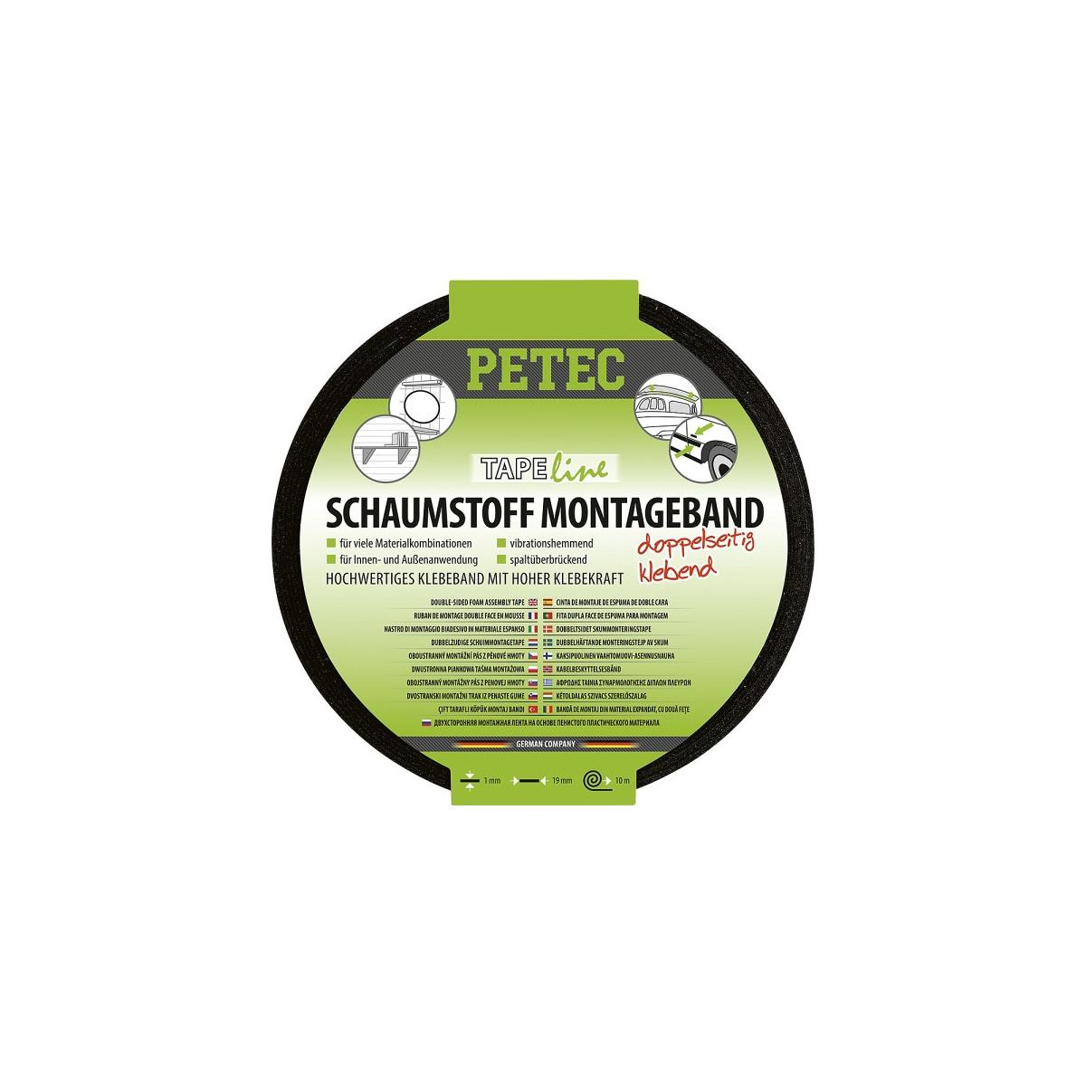 Doppelseitiges Schaumstoff-Klebeband schwarz mit guter Klebekraft. Zur Befestigung und Montage von Halterungen. Universell einsetzbar im Innen- und Außenbereich Gute Haftung auf vielen Werkstoffen Hohe Klebekraft Vibrationshemmend Spaltüberbrückend Ausgezeichnete Scherfestigkeit Kann Schrauben und Nieten ersetzen Hervorragende Kälte- und Wärmebeständigkeit Witterungs-, UV- und alterungsbeständig Beständig gegen Wasser und Salzwasser Technische Daten: Länge: 10 m Gewicht: 90 g Breite: 19 mm Höhe: 1…