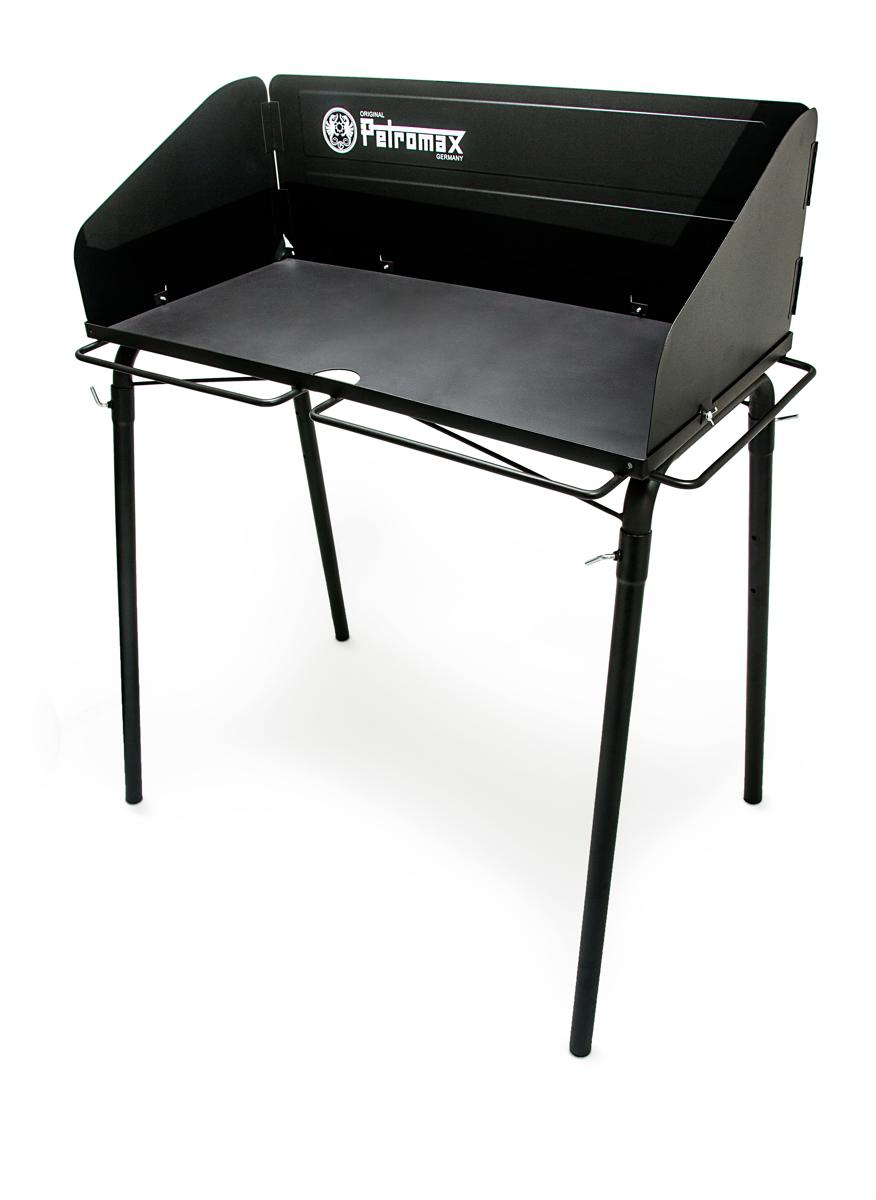 Draußen kochen im großen Stil: Der Petromax Feuertopftisch FE90 bietet eine sichere Stand- und Kochfläche Auf den belastbaren Stahltischen finden (je nach Größe) mehrere Feuertöpfe bzw. Dutch Oven Platz. Die angenehme Arbeitshöhe von 87 cm schont den Rücken und ermöglicht ein entspanntes Outdoor Kochvergnügen. Der großzügig bemessene Windschutz ermöglicht es im Freien energie- bzw. kohleeffizient zu kochen. Die vier Standbeine können alternativ abgebaut werden. Dann kann die Tischplatte mit Windschutz…
