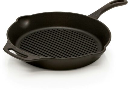Die gusseiserne Petromax Grill-Feuerpfanne gibt es in zwei Ausführungen: Mit klassischem Pfannenstiel oder mit zwei Henkeln. Das Anbraten mit Grillmuster ist mit den Grill-Feuerpfannen ganz einfach. Dank Grill-Rillen am Boden der Gusspfannen können Fleisch, Gemüse und Co. über dem offenen Feuer oder in der heimischen Küche zubereitet werden. Die PetromaxFeuerpfanne funktioniert auf allen Herdarten (Induktion, Gas und Glaskeramik). Technische Daten: Ø 35 x H 6,7 cm 5,0 kg Inhalt 3,5 L