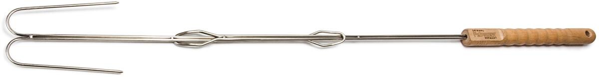 Der Lagerfeuerspieß aus rostfreiem Edelstahl mit Buchenholzgriff. Damit können Würstchen, Gemüse und vieles mehr schnell und einfach über dem Feuer gegrillt werden. Der ausziehbare Stab schafft eine sichere Entfernung zum Feuer. Die leicht gebogenen Zinken des Spießes verhindern, dass das Grillgut herunterfällt. Der Spieß ist in der Länge verstellbar. Technische Daten: Material: Edelstahl, Buchenholz Länge maximal ausgezogen: 92 cm B x H x T (in cm): 8 x 2 x 91 Gewicht (in g): 215