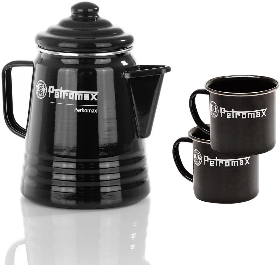 Petromax Perkomax Perkolator + 2 Becher, Emaille, schwarz – Camping Wagner Edition