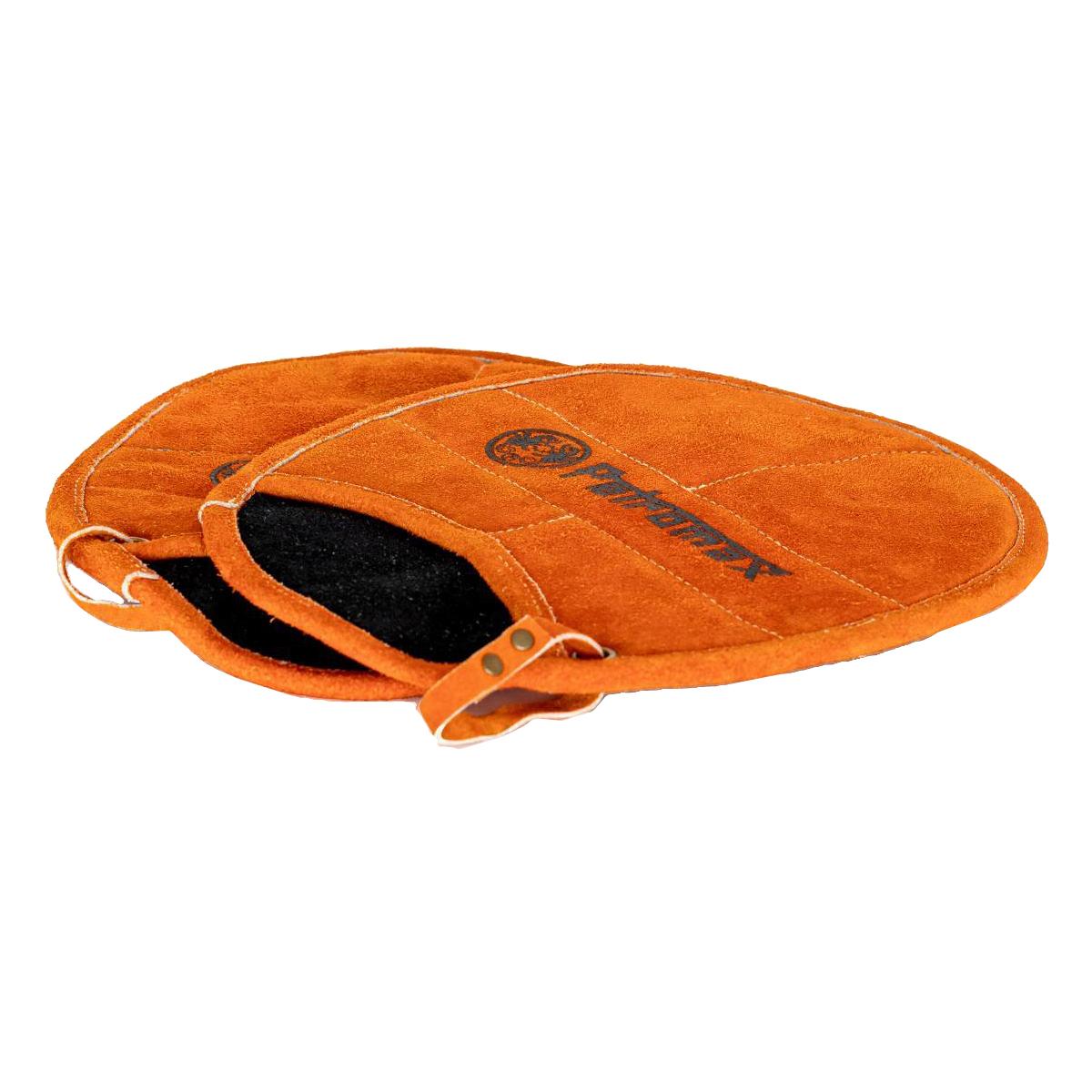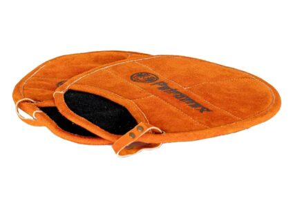 Heißes Kochgeschirr fest im Griff: Die ovalen und mit Aramidfasern gefütterten Topflappen mit Eingriff sichern den Umgang mit heißem Feuertopf und Co. bei einer Kontaktwärme von bis zu 250 °C. Mit seiner natürlichen Raulederoberfläche sorgt der Topflappen für optimale Griffigkeit und eignet sich zudem als Abstellfläche für heiße Feuertöpfe und -pfannen. Im Petromax Glutorange mit Drachenlogo sehen die Topflappen nicht nur stark aus, sondern sind sowohl für die Draußen-Küche als auch für das heimische…