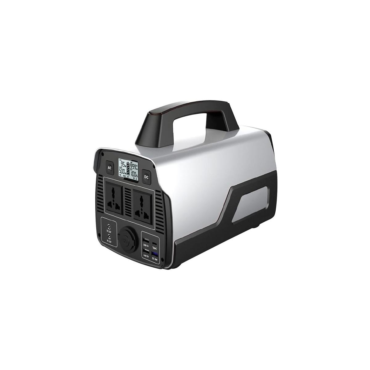 Technische Daten: Batterietyp Li-on 518 Wh Wechselrichter 500W Sinuswelle 230 VAC/50 Hz 2x AC-Steckdose Universal Euronorm 2x DC-Steckdose 12V/10A 2x USB-A 2400mA 1x USB-A QC3.0 18W, 1x USB-C 18W 1x KFZ-Anzünder-Ausgang 10A 1x DC-Eingang 18…24VDC/5A Hauptnetzteil Produktfarbe: silber, schwarz Maße (HxTxB): 21 x 30,5 x 16,8 cm Gewicht: 7 kg Lieferumfang: Inklusive 12V DIN KFZ-Ladegerät